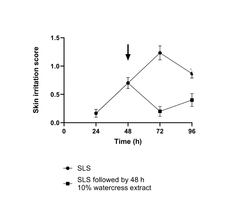 Effect of Watercress extract (10%) on SLS-induced skin irritation, when the Watercress extract was applied at the 48-hour time-point.