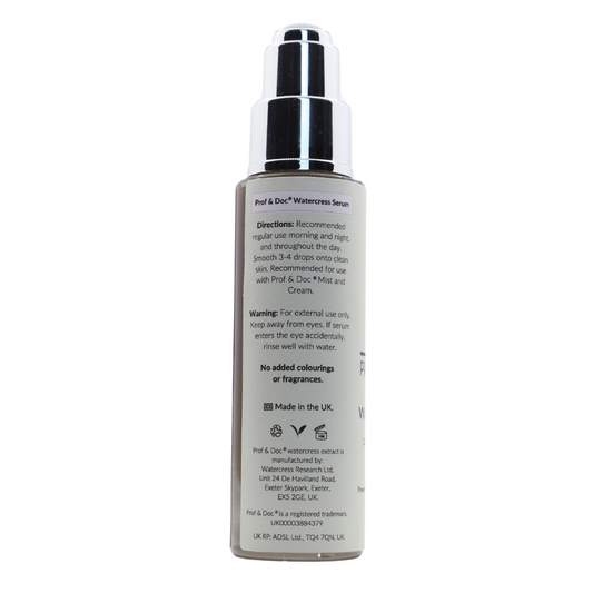 I already eat watercress because of its amazing nutritional benefits, and love that I can now use it to nourish and moisturise my skin. The serum is like a thin gel and absorbs quickly into the skin - I use it on my face and body. The cream is light and also absorbs very well, no sticky residue at all. My skin is refreshed, nourished and moisturised after using Prof and Doc amazing watercress skincare. Great for sensitive skin - I have no allergic reaction to any of the ingredients- and suitable for vegans and anyone who loves natural beneficial products. I did not know Watercress can support collagen production so my post menopause skin is very thankful for that. Very, very happy with my purchase and am recommending Prof and Doc skincare to everyone I know.