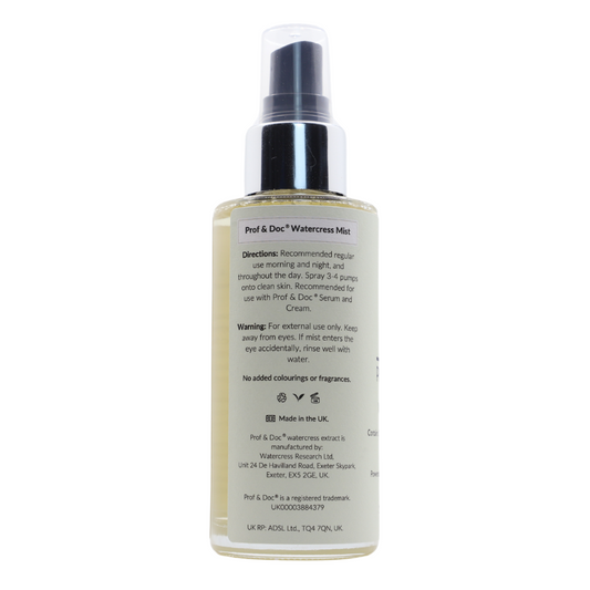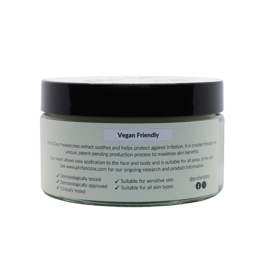 Watercress is at the heart of what we do. The Prof & Doc ® range puts your skin first, no matter your age, skin type or colour. Our novel watercress extract formula is not only safe for sensitive skin and soothing, but also is proven to help protect against irritation. We are an all-vegan brand and are aiming to be a zero-waste company by 2027. Scientifically formulated to give your skin a boost, Prof & Doc's new watercress range is dermatologically tested to be suitable for all skin types.